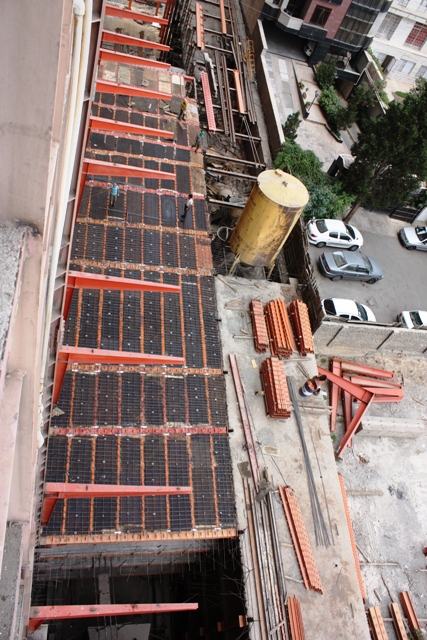 به نام خدا و با سلام، ضمن تشکر از جنابعالی و همچنین جناب آقای مهندس فرودی که مدیریت پروژه را به عهده داشتند و هم اکنون هم مدیریت اجرایی پروژه را به عهده دارند، به استحضار می رسانم هم اکنون در بخشهای مختلف پروژه عملیات اجرایی در حال انجام می باشد. عملیات اجرایی نما در بلوک Aدر ضلع غرب ادامه دارد و نصب شیشه های نما از تراز 19/50+ تا تراز 50/10+ به طورکامل و در قستهای بالاتر بر روی ستونها تا قبل از طبقه پنت هاوس صورت پذیرفته است. در ضلع جنوب تکمیل نصب پانل های نما و در ضلع شرق نصب دستکهای فلزی اتصال به پروفیلهای آلومینیومی نما در حال انجام می باشد. همچنین نصب قطعات آنکراژ نما درضلع شرق، غرب و شمال بلوکC به منظور آماده سازی جهت نصب پانل های نما نیز در حال انجام می باشد.