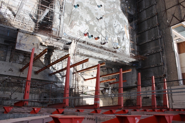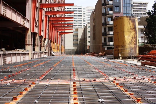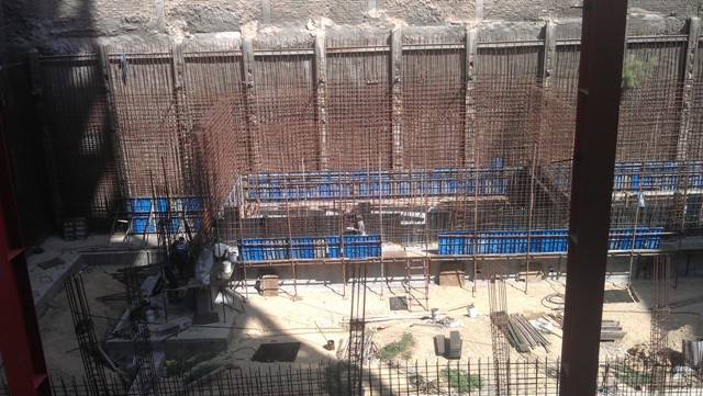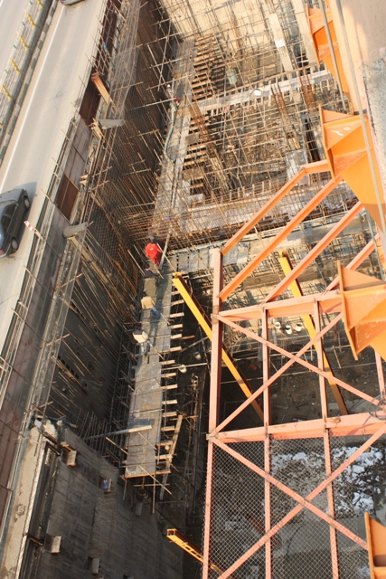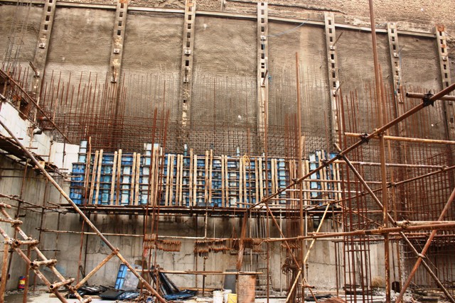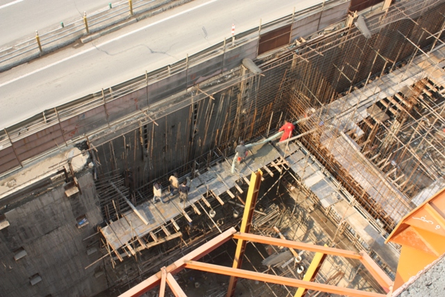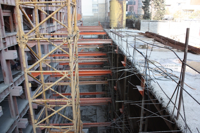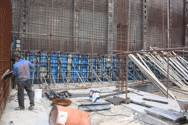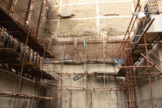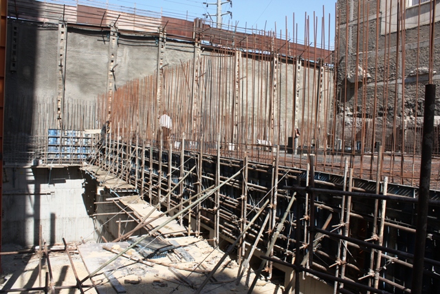 در شمال سایت پروژه هم عملیات اجرایی ساختمان تاسیسات مرکزی در حال انجام است و در حال حاضر، عملیات اجرای دیوارهای حایل و ستونها در طبقه دوم ساختمان تاسیسات در دست انجام می باشد.