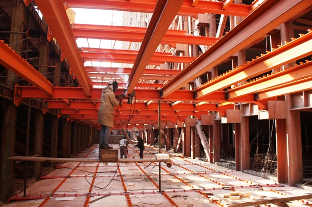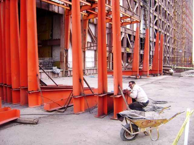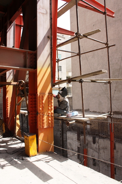 جوشکاری تیرهای فرعی سازه نگهبان شرق سایت برج c