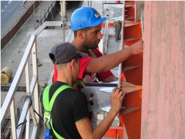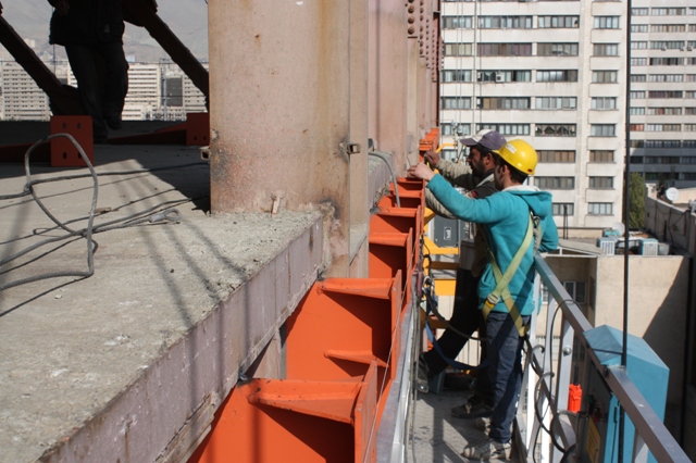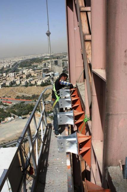 عملیات نصب دستکهای فلزی موسوم به قطعه نوع c به آنکراژ ثابت در وجه جنوبی برج A
