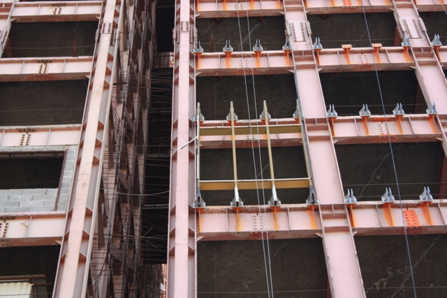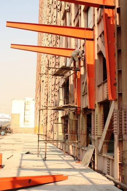 در این مرحله پیمانکار محترم بایستی نسبت به رگلاژ دستکهای فلزی و نقشه برداری کل بدنه غربی بلوک A و تحویل آن به دستگاه نظارت و مشاورین اقدام نمایند و پس از این مرحله پیمانکار مجاز به نصب پانلهای آلومینیومی خواهد بود، به موازات این عملیات، کار ساخت و نصب قطعات فلزی C و B , A در سایر بخشهای پروژه ادامه دارد.