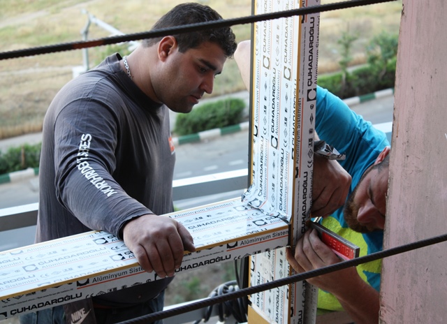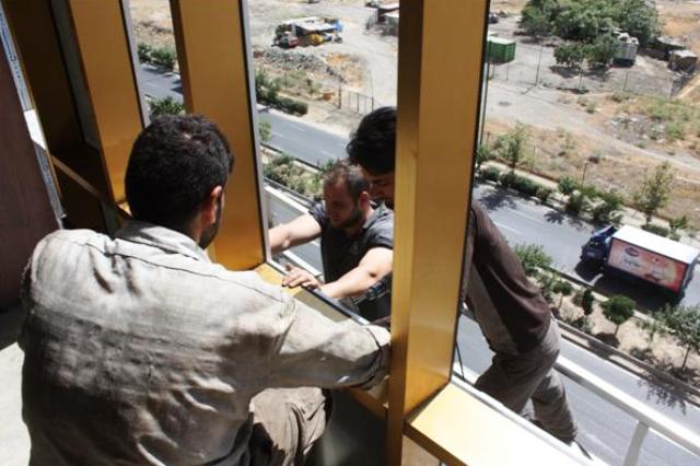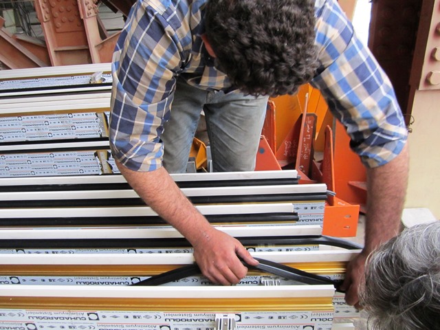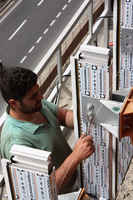 نصب لاستیک و پلی آمید روی پروفیل های آلومینیومی مربوط به وجه جنوبی بلوک A