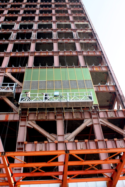 ادامه نصب شیشه های نما ضلع غرب برجA