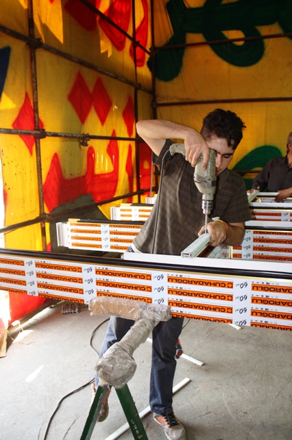تخلیه پروفیل های آلومینیومی مربوط به وجه شرقی برج A