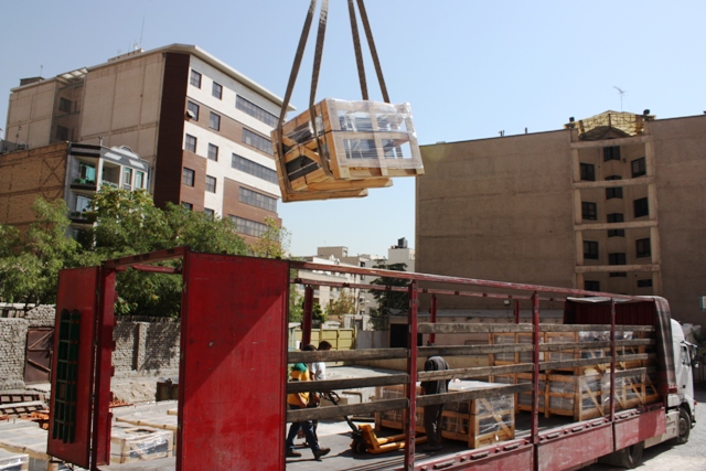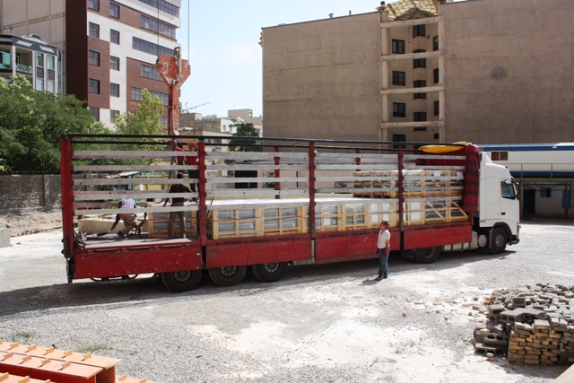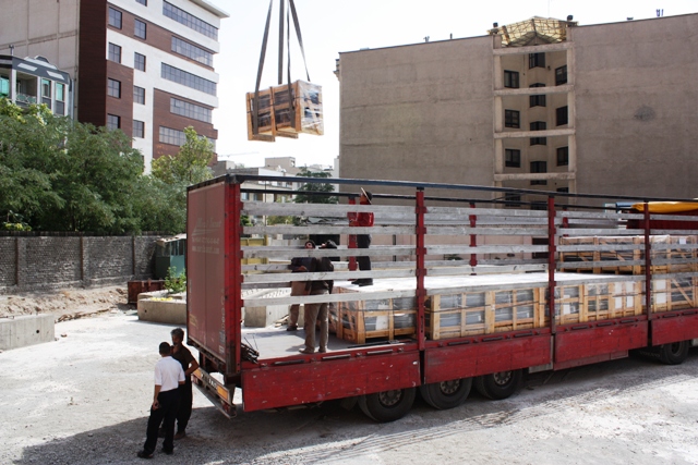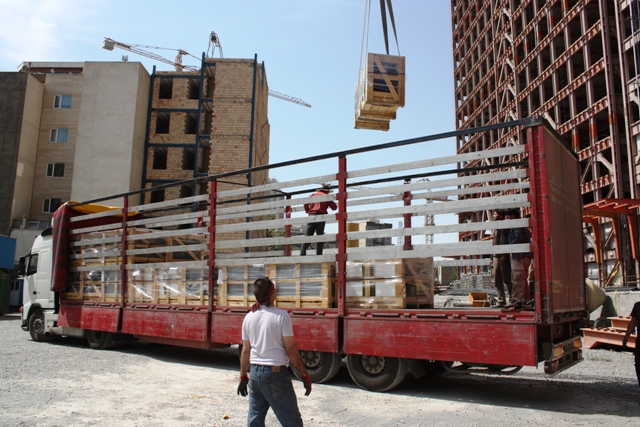ورود محموله قطعات شیشه دو جداره نما به پروژه