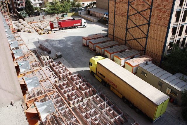 طبق سفارش صورت پذیرفته، قطعات شیشه دوجداره نما مربوط به وجه غربی برج A در حال تولید می باشد، همچنین 2 محموله از شیشه های دوجداره نمای غربی برج A به مساحت 1354 مترمربع در پروژه تخلیه گردیده است. در حال حاضر 2 محموله دیگراز قطعات شیشه دوجداره نمای غربی برج A بارگیری شده و در حال ارسال به محل پروژه می باشد.
