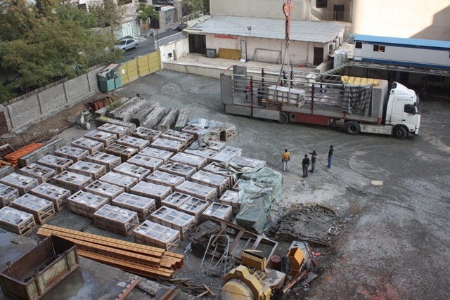 از آنجائیکه نگهداری و دپوی پانلها موجب آسیب دیدگی و اعوجاج آنها خواهد گردید، فعلاً دپوی مصالح به صورت پروفیل برش خورده میباشد تا پس از کنترل دستگاه نظارت و صدور مجوز نصب، تولید پانلها آغاز و به محض تولید، در جای خود در نما استقرار یابند.