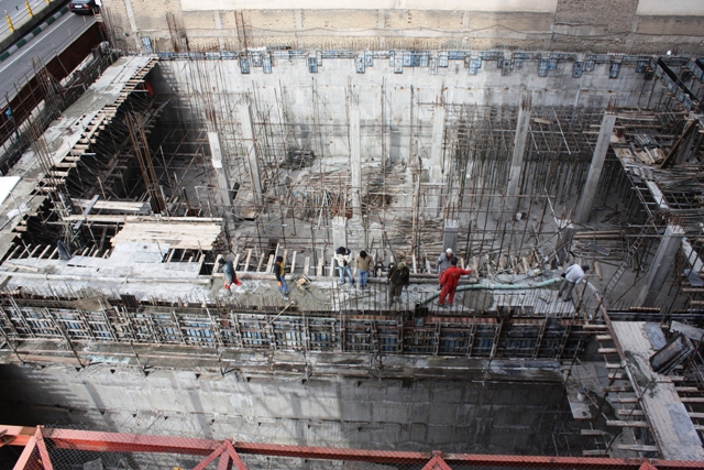 عملیات اجرایی تکمیل زیر زمین ها و پارکینگ ها هم در چهار طبقه زیر زمین در قسمتهای تکمیل نشده بلوک C ادامه دارد.