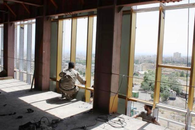 در حال حاضر عملیات مونتاژ پروفیل های آلومینیومی به منظور ساخت پانل در حال انجام می باشد و تعداد 75 پانل از وجه شرقی برج A نیز آماده شده است.