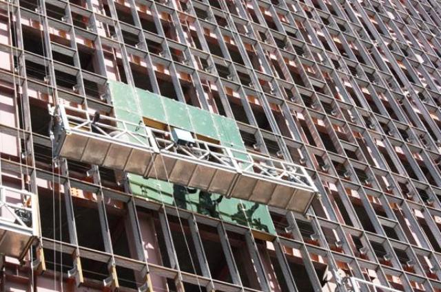 عملیات نصب قطعات شیشه دوجداره نما در وجه غربی برج A
