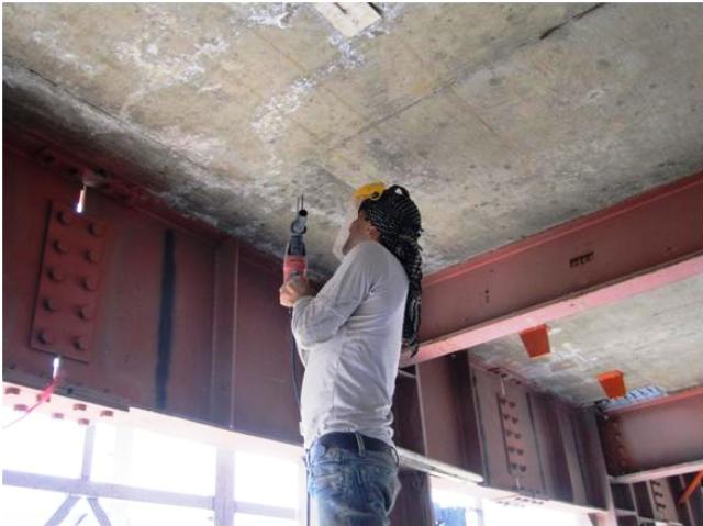 سوراخکاری سقف جهت نصب قطعه سوم آنکراژ نما ( قطعه زیرسقفی )